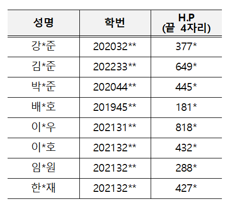 서류 평가를 통해 최종 선발 결과를 아래와 같이 안내드립니다. 관련 일정 확정 시 선발된 학생분들에게는 일정 및 안내사항을 별도 안내드리겠습니다. 최종 선발된 분들께는 축하드리며, 선발되지 않은 분들께는 아쉬운 마음을 전합니다.