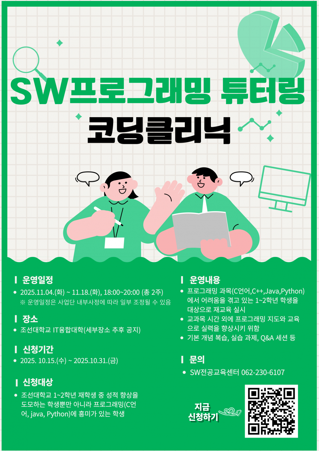 2025-2학기 SW프로그래밍 튜터링-코딩클리닉 신청 안내 (1~2학년 재학생 대상)