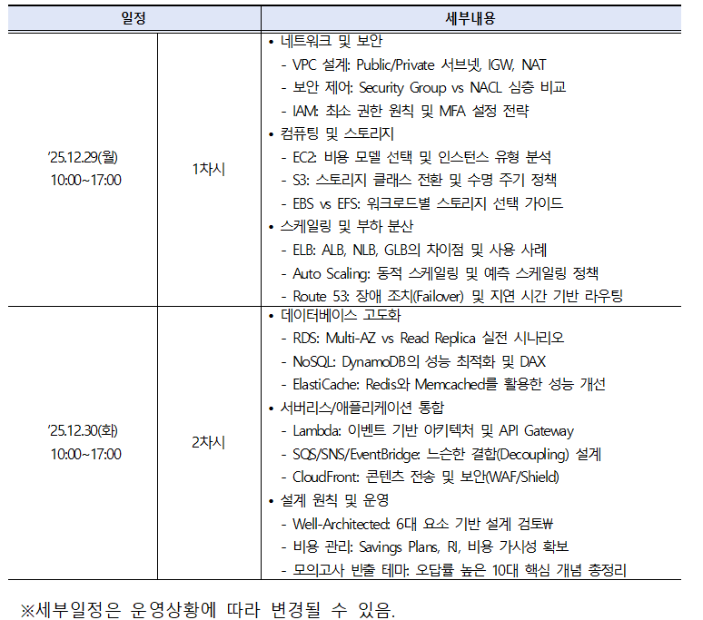 · 2025년 AWS 기초 특강 프로그램 이수 대상자 25명(선착순)