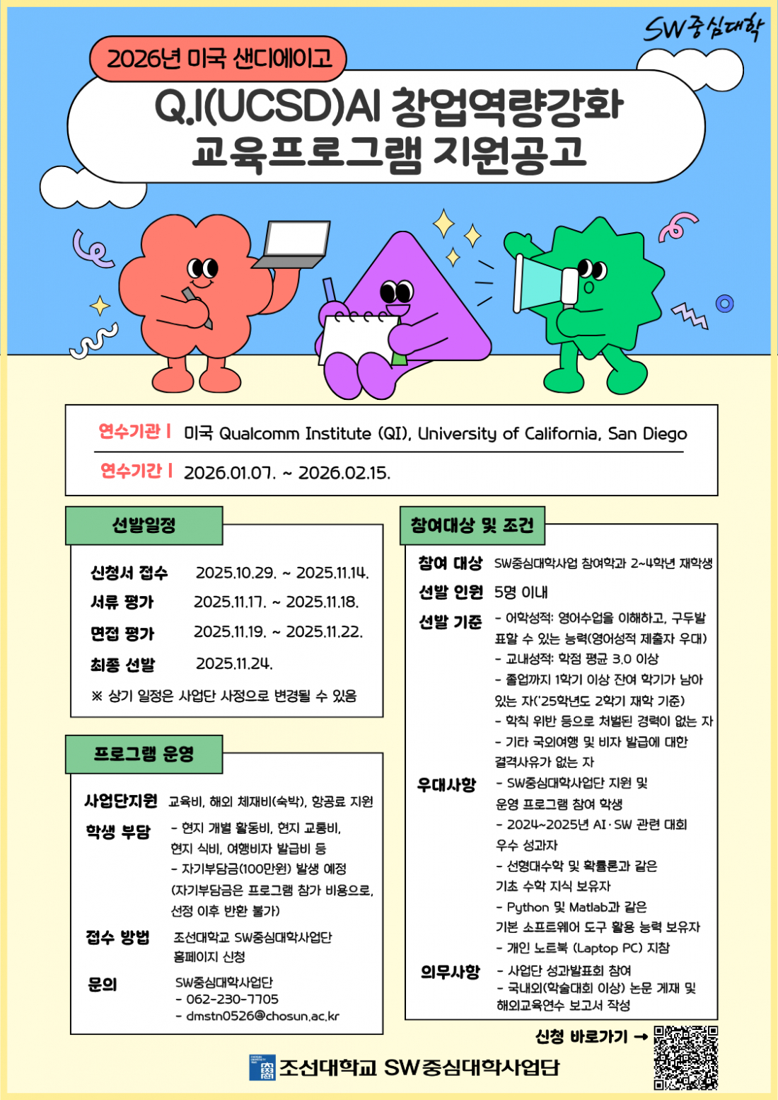 2026년 동계 해외교육연수(미국 샌디에이고 Q.I(UCSD) AI 연구 집중형 프로젝트) 지원공고