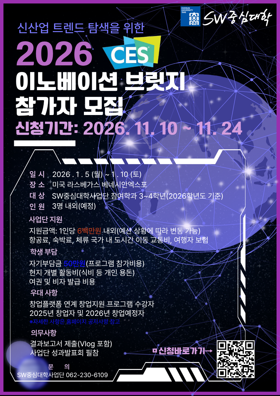 - 지원항목: 항공료(이코노미), CES 입장권, 여행자보험, 교통비(현지교통비 및 인천-광주 왕복 비용)
