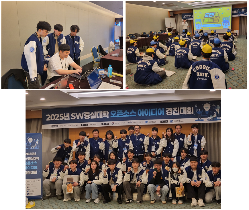 조선대학교 SW중심대학사업단은 11월 14일(금)부터 15일(토)까지 1박 2일 일정으로 소노벨 변산에서 「2025년 SW중심대학 오픈소스 아이디어 경진대회」를 성공적으로 개최하였다. 이번 대회에는 SW멤버십 재학생 24명이 참가해 오픈소스를 활용한 실생활 문제 해결과 창의적 서비스 개발을 주제로 치열한 경쟁을 펼쳤다.