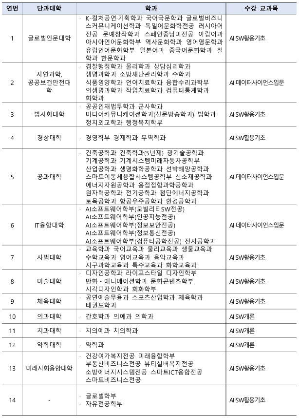 3. 교과목별 운영 학과